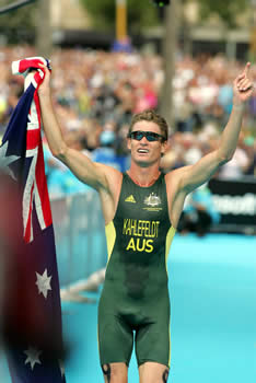 A los 500 m de la carrera a pie, Noya se pone al frente del grupo y comienza a seleccionarlo a 13 unidades. El local Rank y Kahlefeldt toman el mando en los siguientes kilómetros y reducen el grupo aun más a 7 unidades al paso por el km 5, grupito en el que también van Gómez, Clark y Silva entre otros. Al paso por la 3ª vuelta Noya vuelve a tomar el mando e incrementa el ritmo, sin embargo en el km 8.5 Hauss da un escalofriante palo y reduce el grupo a 3 unidades que se jugarían el podio en un largo sprint. Kahlefeldt se lleva la prueba con un sg sobre el británico Clark y el francés Hauss que paga en el sprint su valentía.