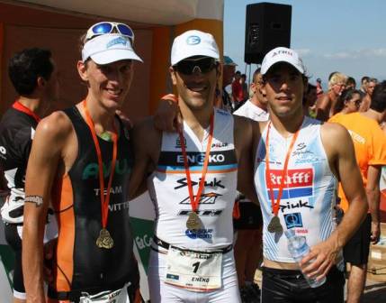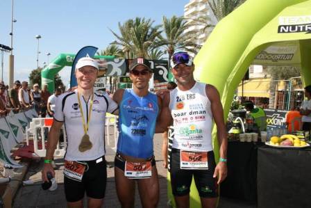 En la prueba de distancia IM, exhibición de Velázquez que se impuso desde los primeros km del ciclismo. Tras él entraron Gregorio Cáceres y el alemán Ulrich Konschak. Los tres bajaron sobradamente de las 9 h.
