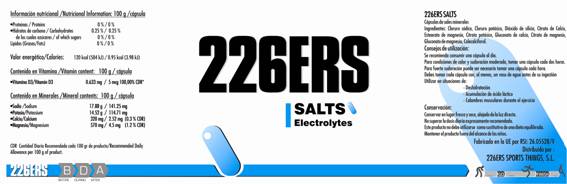 La marca de nutrición 226ers ha lanzado un nuevo producto al mercado, las SATLS Electrolyte, unas cápsulas en las que figuran minerales como sodio, potasio, calcio y magnesio y que los depósitos de sales minerales necesarios durante el ejercicio, además de reducir calambres musculares durante el ejercicio intenso. http://www.226ers.com/