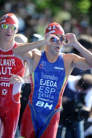 Fue el local Schoeman quien abrió el segmento de natación dando tiempo a un numeroso grupo de 20 unidades que salían en menos de 10 sg, entre ellas estaba Ramón Ejeda y Rieig, quienes se encuentran concentrados junto a Gómez Noya en el país.