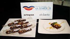 Dos representantes de la gastronomía alavesa, ARTEPAN y el restaurante EL CLARETE, ha presentado hoy el postre exclusivo del Mundial LD Triatlón. El manjar se denomina “Hirugoxo”, juego de palabras donde el tres es el secreto de este dulce aperitivo que combina tres texturas: pastel Browne, mousse de chocolate y arroz inflado con trocitos de melocotón.