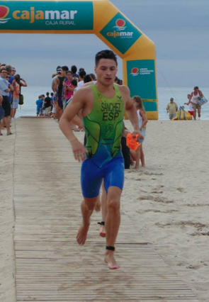 «Una natación rápida desde el principio donde me pongo a tirar con fuerza junto a Nacho Campos, pero un error de orientación nos lleva a perder unos segundos, cuando giro en la primera boya pasa un grupo de 4 hombres, aprovecho su estela y me sitúo a sus pies. Saliendo del agua cambio para salir delante, transición rápida y a rodar en bici. Primera vuelta buscando sensaciones, tratado de ir cómodo durante todo el tramo de bici, ya que la carrera a pie iba a ser donde se decidiese todo. Una vez acabada la bici, salgo a correr con unos 30″ de ventaja sobre Rodrigo Garcia, y voy regulando en la primera vuelta, aprovechando las zonas donde se podía correr rápido para abrir hueco. No es hasta la segunda vuelta donde conseguiría situarme sobre el minuto de ventaja. Consigo ser 1º en Junior y GGEE y 5º tiempo en ÉLITE, una sorpresa grata que me hace especial ilusión. Al final el trabajo duro tiene su recompensa.»