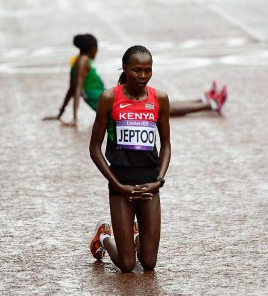 Jeptoo tuvo una progresión tremenda casualmente al cambiar de agente. Fue la cadena de televisión alemana ADR la que empezó a destapar el asunto en un reportaje sobre los atletas keniatas. En dicho reportaje se dajaba entender que los representantes de los atletas keniatas tenían mucho que ver en sus repentinos cambios de calidad. También decía la dificultad de la AMA, Agencia Mundial Antidopaje, para controlar a los atletas keniatas, básicamente porque era difícil que dieran una ubicación exacta a diario.