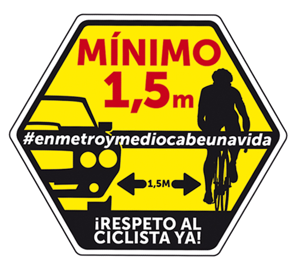 Bajo el lema » En un metro y medio cabe una vida « la revista Triatlon pretende concienciar a los conductores de respeten la distancia de 1,5 m a la hora de adelantar a los ciclistas.