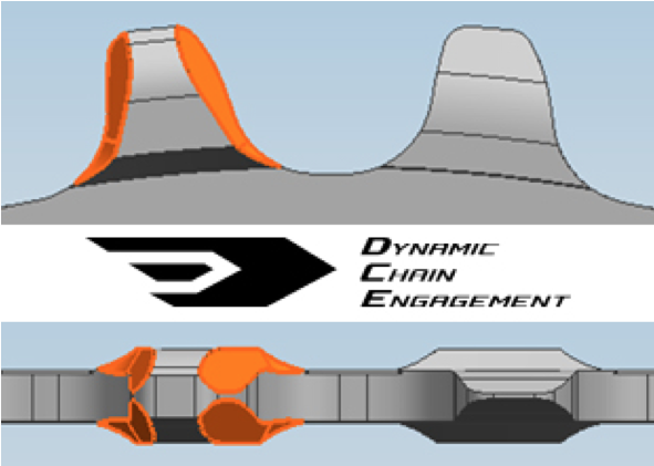Uno de los objetivos era una gestión eficiente de la cadena y con el nuevo plato XTR SM-CRM91 y DEORE XT SM-CRM81 se consigue introduciendo un nuevo concepto llamado Dynamic Chain Engagement (DCE).