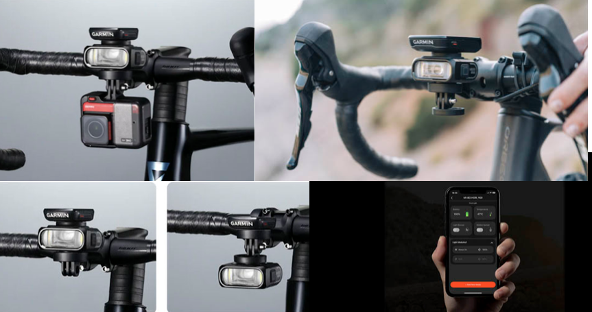 Coloca tu GPS Garmin o Wahoo directamente sobre la luz, de una forma compacta, segura, compatible con tu cockpit y listo para competición