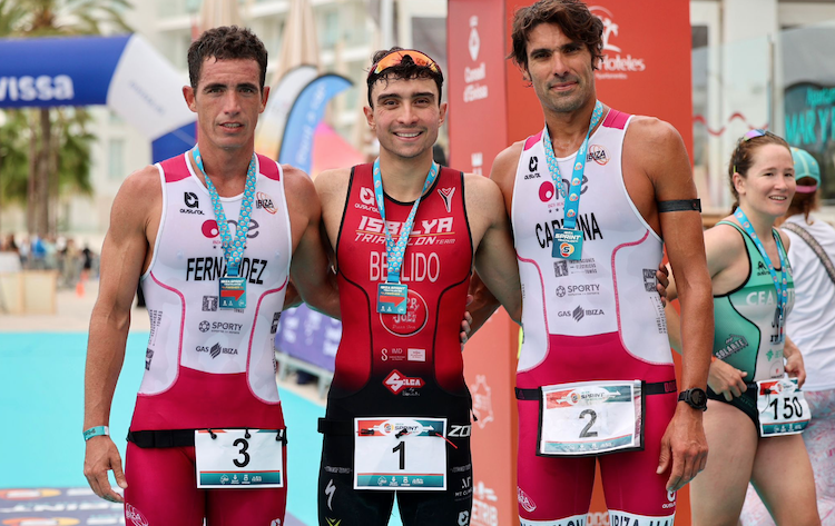 Dos hombres escoltaron a Bellido en el podio masculino, los locales del club organizador Ibiza Half Triathlon, Pablo Fernandez y Javier Cardona que cedió en la carrera a pie.