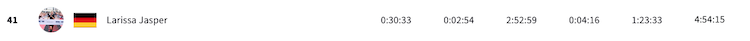 En mujeres la primera GE fue la alemana Larissa Jasper quien finalizó la 41 de la general con un tiemp de 4:54:15