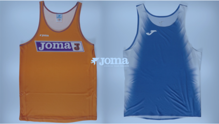 Una comparativa entre una camiseta de tirantes de atletismo de 1983 a una de 2026 refleja la evolución tecnológica de Joma