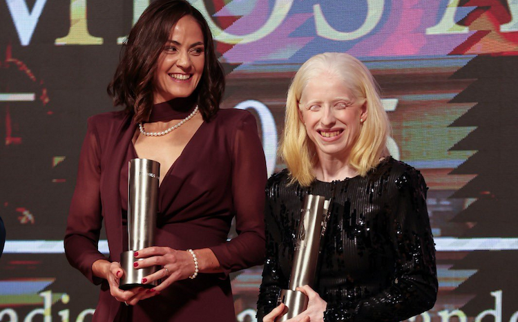 La paratriatleta gallega acudió ayer a la Gala de la Asociación de la Prensa Deportiva Madrileña. Lo hizo acompañada de su guía Sara Pérez y se llevó el de Premio a la Excelencia Deportiva y Humana.