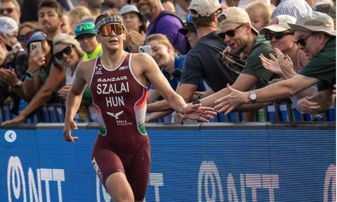 Herida pero con la bici funcionando, lejos de retirarse Szalai siguió y llegó a la T2 justo 7 sg por delante de las perseguidoras, a 34 sg de las primeras. Finalmente corrió como las mejores pese a la caída y acabó 9º.